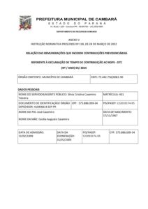 ANEXO V RELAÇÃO DAS REMUNERAÇÕES QUE INCIDEM CONTRIBUIÇÕES PREVIDENCIÁRIAS – Silvia Cristina